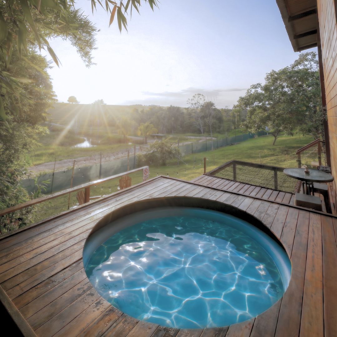 Con piscina, fogata privada y cama malla panorámica.